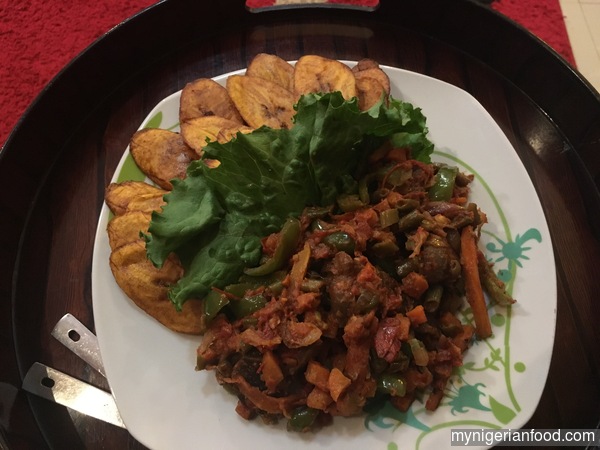 - Serve with the fried plantain, garnishing with lettuce and tomatoes
