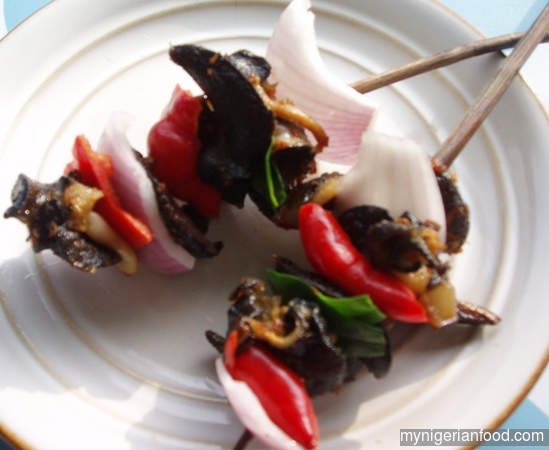 - Put the well prepared and seasoned snails into the small pot and stir for about 7mins