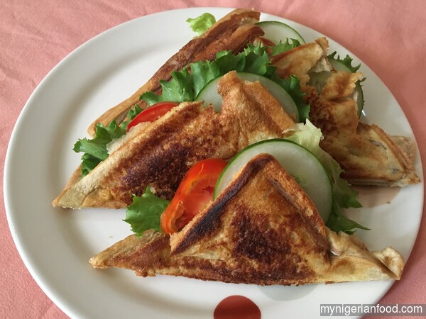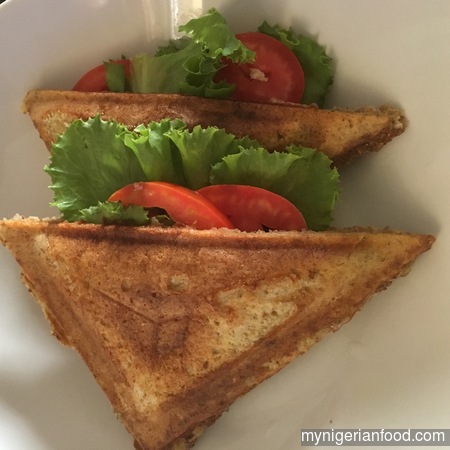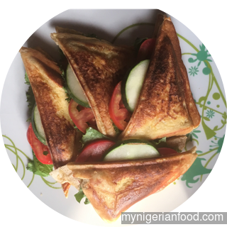 - Place 2 slices together and put in the sandwich maker and toast the bread