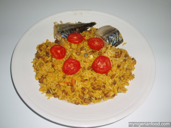 - Add the rice,chilli pepper, palm oil, salt, seasoning cubes, onions, water and the broth