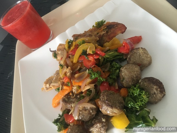 - Season with the black pepper, garlic, ginger, salt, half of the seasoning cube and half of the onions