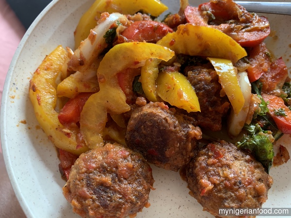 - Add the grilled meatballs into the pan and let it cook for about 30 seconds
