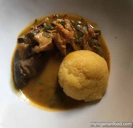- When the water starts to boil, scoop in the mashed cocoyam to thicken it