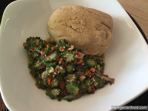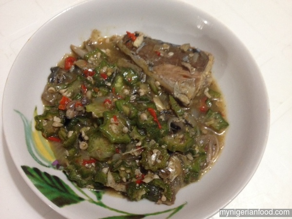 - Add the sliced okro, chilli pepper and remaining seasoning cube to the cooked fish