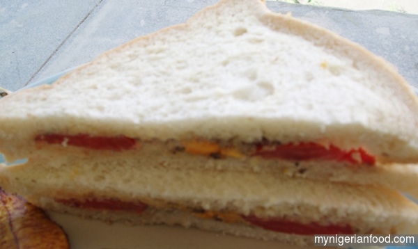 - Place the other ingredients in between the 2 slices