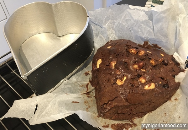 - Pour into an 8 inch pan and bake in a pre-heated oven