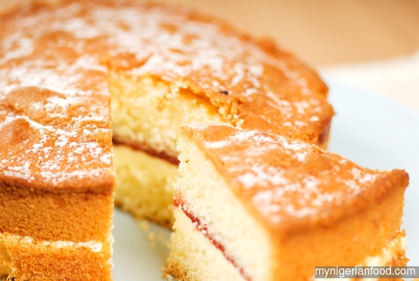 N/B This cake should be baked in an 8 inch sandwich pan. It is beautiful and delicious when sandwiched with whipped cream or jam. For chocolate layer, use 1 cup flour +1/2 cup cocoa powder