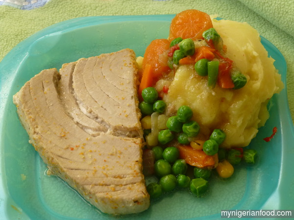 - Season with curry, thyme, onion, garlic, ginger, curry, thyme, seasoning cube, salt and chili,