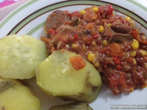 - Add the chopped suya and the suya pepper, stir and leave to cook for another 5mins